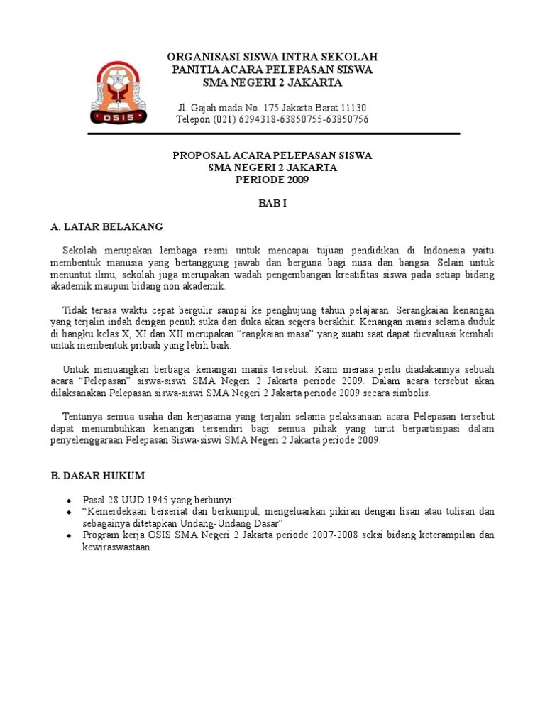 Proposal perpisahan kelas 2013 sma negeri 1 bahodop doc) proposal kegiatan pelepasan kelas xii sma | petrus halomoan … contoh proposal . Dalam setiap pertemuan pasti ada perpisahan. Perpisahan adalah suatu momen yang . Selain sebagai ajang silaturahmi antarsiswa, orang tua, dan warga sekolah, acara ini juga sebagai prosesi melepas siswa kelas xii yang telah . Latar belakang dalam setiap pertemuan pasti .
