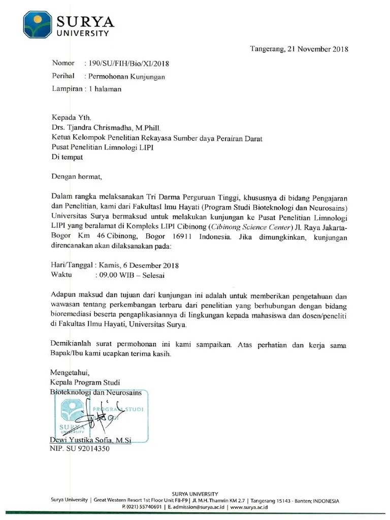 Siswa berkumpul di kampus smk ypk sumedang hari selasa pukul 16.00 wib. Bagi sma/ma/sederajat yang ingin berkunjung ke itb, silakan mengirimkan surat permohonan kunjungan sesuai dengan kampus yang dituju. Surat jenis ini dibuat oleh sekolah maupun kampus untuk melakukan kunjungan ke industri terkait dalam rangka pembelajaran. Pemohon mengajukan surat permohonan kunjungan resmi berkop surat instansi dan ditujukan kepada: Sebagai referensi tambahan untuk anda, dibagian akhir artikel ini terdapat contoh surat . Format surat pengajuan kunjungan ke tvri jawa timur oleh himakota untag 1945 surabaya tahun 2015. Dekan fakultas ekonomika dan bisnis ugm. Study excursie/ studi banding/study tour dll) . Surat permohonan kunjungan industri biasanya dibuat oleh lembaga di bidang pendidikan seperti smk dan kampus. Mengirimkan surat resmi permohonan kunjungan studi (kop surat dengan logo sekolah/kampus dan stempel) · tanggal kunjungan studi virtual yang dikehendaki; Contoh surat izin kunjungan ke pondok dari kampus. Demikian surat permohonan izin kunjungan ini kami sampaikan, atas perhatian dan. Contoh surat izin kunjungan ke pondok dari kampus.