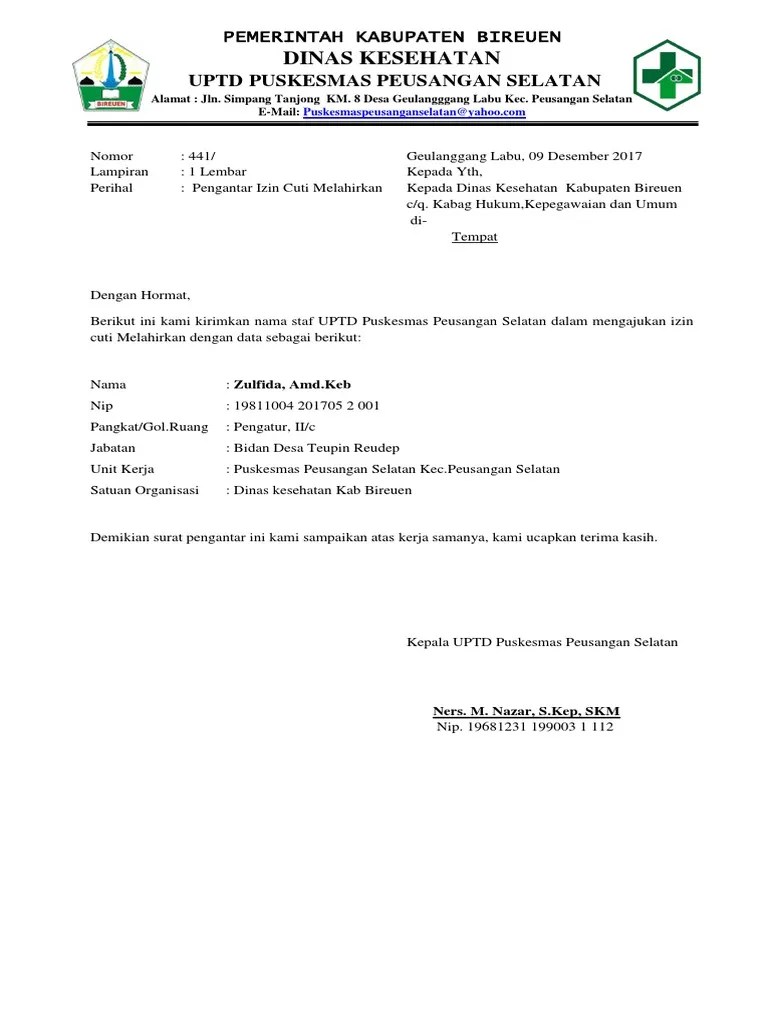 Contoh Jawaban Permohonan Cuti Hamil Dan Melahirkan : Contoh Surat Cuti Pegawai Negeri Sipil | Surat Permintaan : Surat permohonan permintaan data kp;